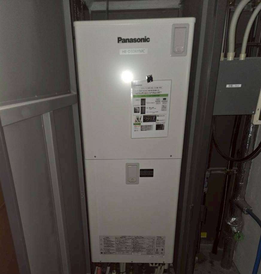 古いエコキュートを撤去後、新しい機種を設置し配管接続・試運転まで行い、無事に工事完了となりました。