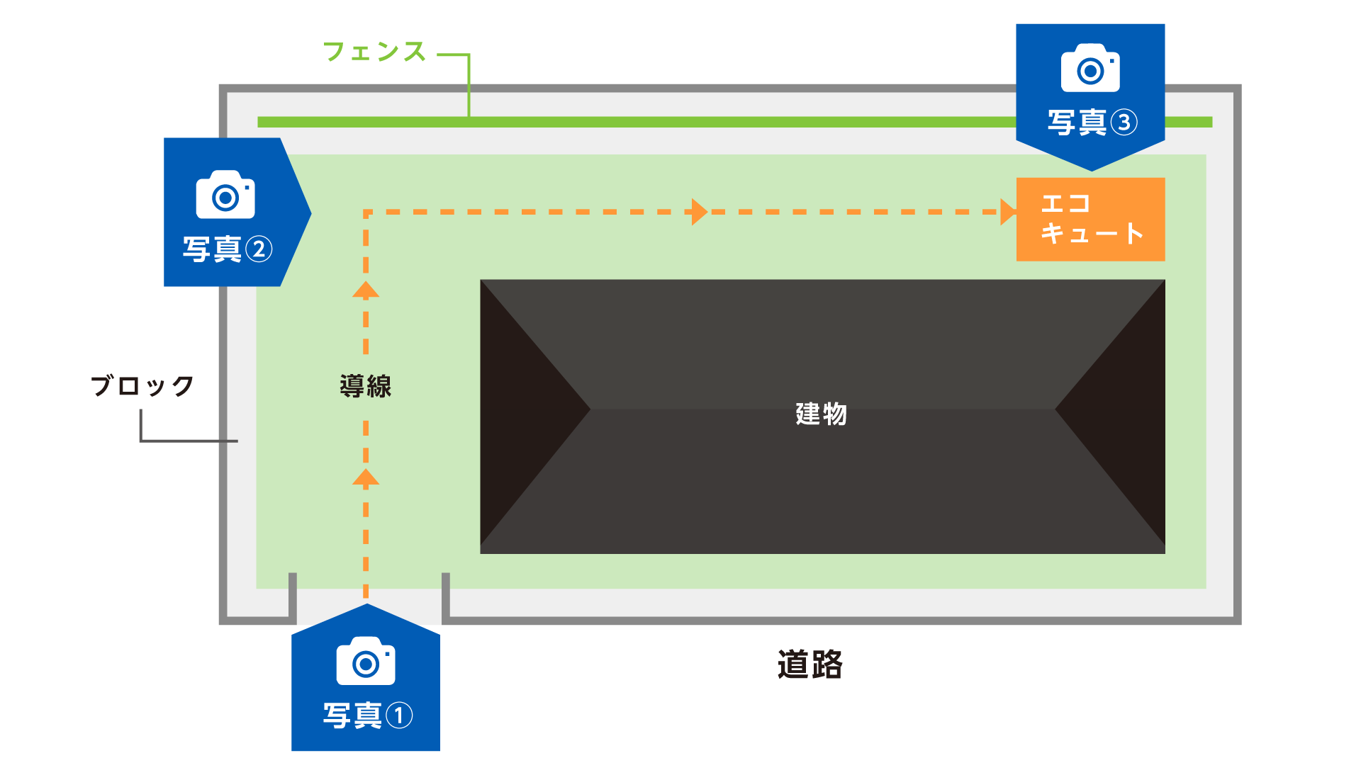 スムーズな作業を行うため、事前にご依頼箇所の写真撮影をお願いしております。搬入経路を把握するため、全3方向から撮影いただくことで、最短でのお見積もりが可能になります。ご協力により、迅速かつ正確なサービス提供ができますので、ご理解とご協力をお願いいたします。